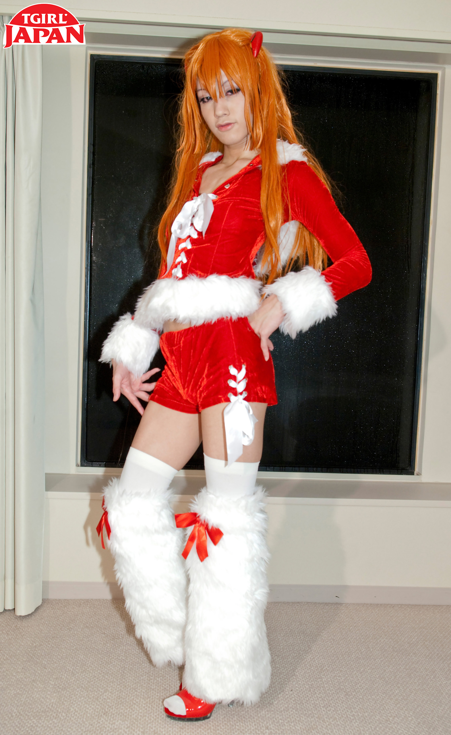 Tokyo redhead Karina Shiratori is ready for more! Even though she was born in Tokyo, Karina's roots are from Northern Japan, which you can tell by looking at her gorgeous pale skin! She arrived on the set ready to have fun! Dressed up in a sexy red corset and black stockings, Karina was so eager to pose and show it all off! Watch her in another hot solo scene, she's stunning!